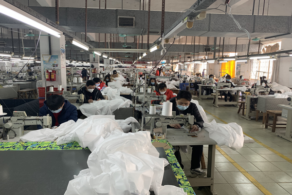 做好上面的防護(hù)準(zhǔn)備工作,員工(身體狀況良好的)也可以放心的來到工廠上班了,現(xiàn)在思諾華制衣的員工也已經(jīng)陸陸續(xù)續(xù)的來到工廠,全力開展生產(chǎn)防護(hù)服,抗擊疫情,隔離病毒但不隔離愛,請觀看以下思諾華制衣工廠實拍生產(chǎn)民用防護(hù)服的圖片(員工均佩戴口罩、身體狀況均良好):