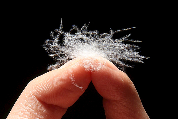 羽絨有一個(gè)三維結(jié)構(gòu),所以它可以“擴(kuò)展”。在相同的重量下,絨毛中的每一簇細(xì)絲都能比其他任何材料容納更多的空氣。每克羽絨大約有70000根細(xì)絲,這些細(xì)絲相互重疊、纏繞形成一層保護(hù)層,通過保持空氣在適當(dāng)?shù)奈恢脕肀3譁嘏徒^緣。