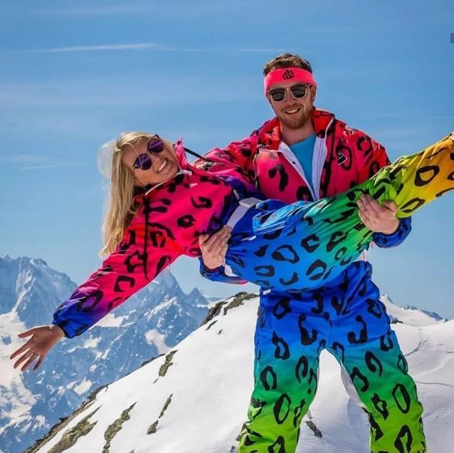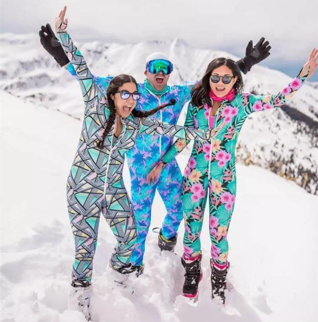 這靈感難道來(lái)自兒童游泳池的皮球或是奶奶家的花床單?實(shí)在想不懂他們?cè)诨┑臅r(shí)候喜歡穿成五顏六色。話說(shuō)一開(kāi)始在滑雪服上運(yùn)用鮮艷的顏色,是因?yàn)樵诎籽┌}皚的世界里,撞色強(qiáng)烈的色彩搭配可以讓滑雪者突出,提升滑雪樂(lè)趣。但是也不至于這樣隨意的顏色搭配吧,只能說(shuō)之前的滑雪服設(shè)計(jì)審美落后得讓人發(fā)指。