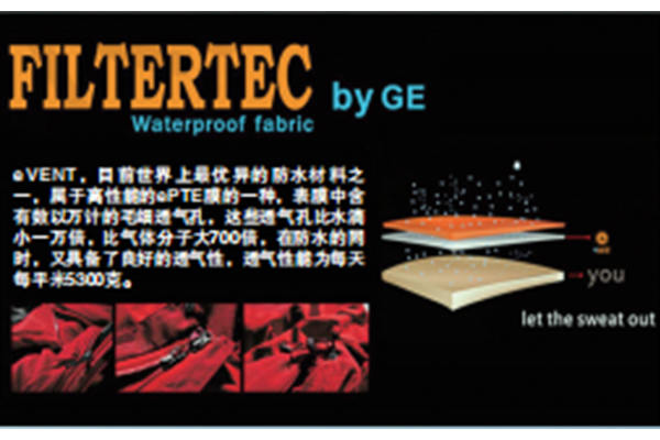 則EVENT使用了GORE-TEX面料的品牌沖鋒衣售價高達幾千上萬元,一般的戶外愛好者常常只能是“望衣興嘆”。而誕生比GORE-TEX略晚的EVENT面料的性價比似乎要高一些,兩者都被稱為頂級沖鋒衣的面料。EVENT技術(shù)上使用了與GORE-TEX完全不同的思路,它使用一種全新的EPTFE織物(不是覆膜)工藝,這種織物具有極其穩(wěn)定的化學(xué)性能,適用的溫度范圍更廣,而且耐老化。面料層的小孔雖然比EPTFE覆膜的分子透氣孔大,但是依然能夠稱職地將雨水阻隔在面料外部,即使最小的水珠(霧珠)也不能輕易通過。而且擴大的透氣孔讓透氣性能幾乎與傳統(tǒng)織物面料沒有差別。
