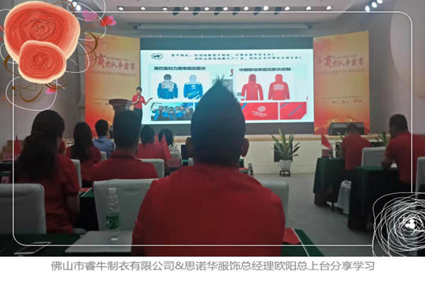 首先是總結,現(xiàn)場有很多各大各行業(yè)的企業(yè)家上臺來總結學習分享,我們總經(jīng)理歐陽總被邀請上臺分享,請看以下圖片,PPT 上面寫著:好羽絨服睿牛制造,沖鋒衣睿牛更專業(yè)!國際品牌羽絨服生產(chǎn)廠家,團隊企業(yè)沖鋒衣定制專家!大家有這方面的需求可以記住我們并聯(lián)系思諾華工廠哦!