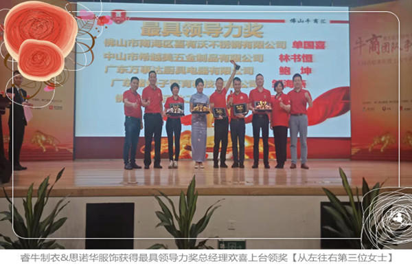 以下是睿牛制衣&思諾華服飾分別獲得了《榮譽企業(yè)獎》和《最具領導力獎》的圖片,歐陽總也是激動地小跑上臺的,思諾華能有今天的成就,我們的總經(jīng)理付出了太多,也經(jīng)歷了太多心酸和困難,感謝網(wǎng)絡營銷讓睿牛和客戶相識,也感謝牛商和單仁資訊讓我們學習了網(wǎng)絡營銷,讓更多客戶看到我們!