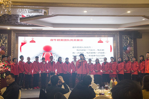 年會正式開始,睿牛總經(jīng)理華姐上臺發(fā)表激情演講,總結2018年工作得失,市場發(fā)展前景,鄭地有聲地向大家描繪了睿牛制衣2019的新思路,新行動,“乘夢飛翔,再創(chuàng)2019輝煌”。