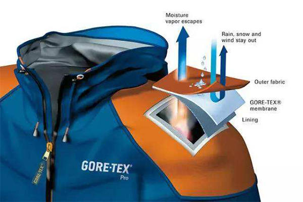 (1)一種是EPTFE復(fù)膜的微孔型面料,目前國(guó)內(nèi)多是GORE-TEX、DENTIK、EVENT、3TO1-TEX這幾種。它防水透氣的功能是在服裝的外面料上復(fù)合一層微孔薄膜,其中的微孔比水滴分子小,又比氣體分子大,可以在阻擋雨水的同時(shí)揮發(fā)自身的汗氣。