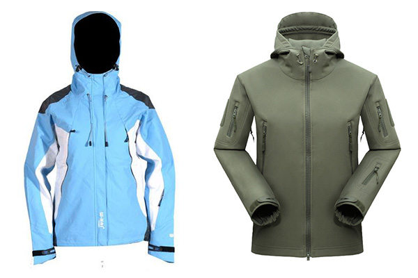 沖鋒衣的面料一般是由:外面的保護(hù)層+中間防水透氣層+里料部分組成。兩層壓膠面料是保護(hù)層和防水透氣層壓在一起,里料與其分離,里料多數(shù)采用尼龍綢、網(wǎng)格布或某種吸汗材料,多為黑色,縫線處的壓膠條一般被里料擋住,是看不見,除非是透過網(wǎng)格布;三層壓膠面料是保護(hù)層、防水透氣層和里料壓在一起,看上去像是一層面料,一般里料顏色多為銀灰色,可以看到里料縫線處的壓膠條。一般來說二層面料的透氣性以及保暖性比三層的稍好,但三層面料重量輕、穿著舒服、折疊體積小。