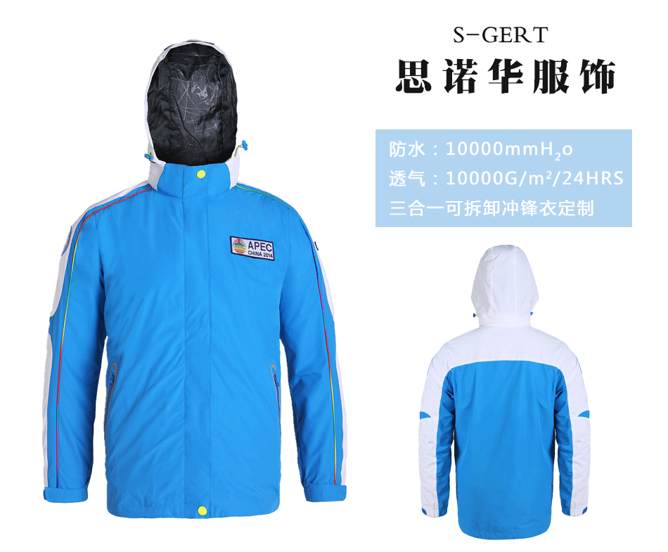 可脫卸沖鋒衣:可脫卸沖鋒衣定制,自由選配羽絨服&搖粒絨,保暖防風(fēng),輕便攜帶。
