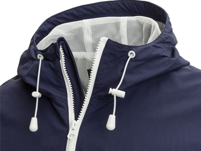 風(fēng)衣內(nèi)襯:風(fēng)衣內(nèi)里采用網(wǎng)布構(gòu)造。在劇烈運(yùn)動(dòng)時(shí),可加速透氣排濕,身體不悶熱,衣服不粘身。